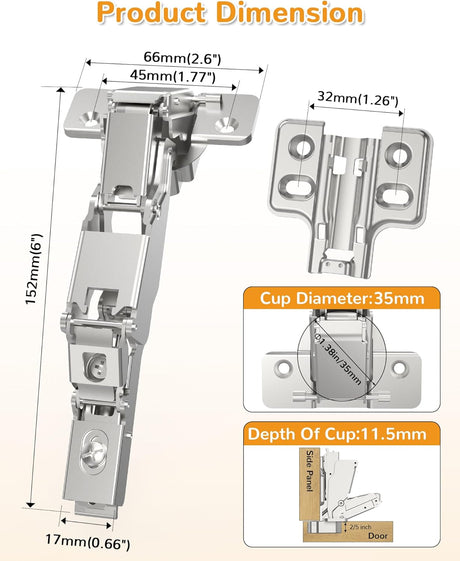 120° Frameless Euro Concealed Soft Close Cabinet Hinge