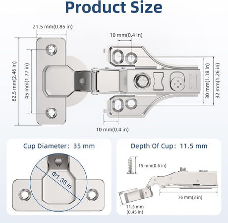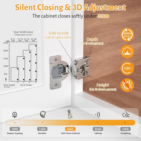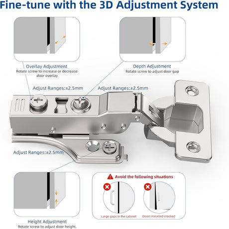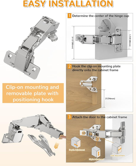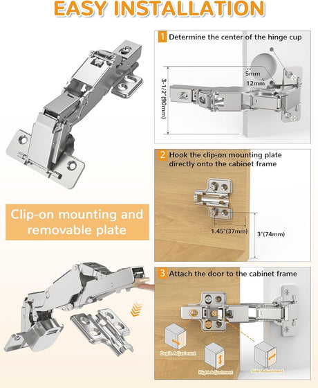 105° Open Angle 3D Soft Close Concealed Hinge for Face Frame Door