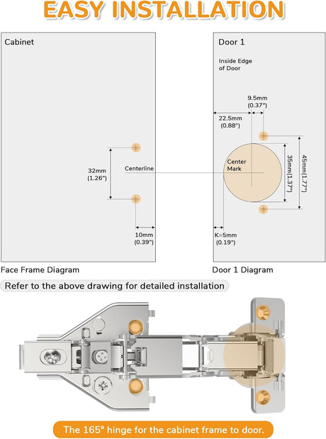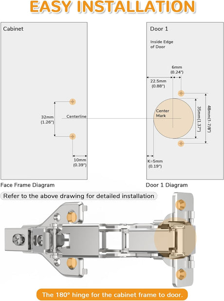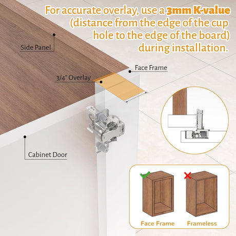 105° Open 3D Soft Close Concealed Kitchen Cabinet Hinge for Face Frame Door