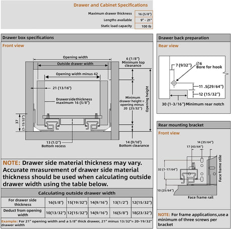 18 Inch Full Extension Undermount Soft Close Drawer Slides
