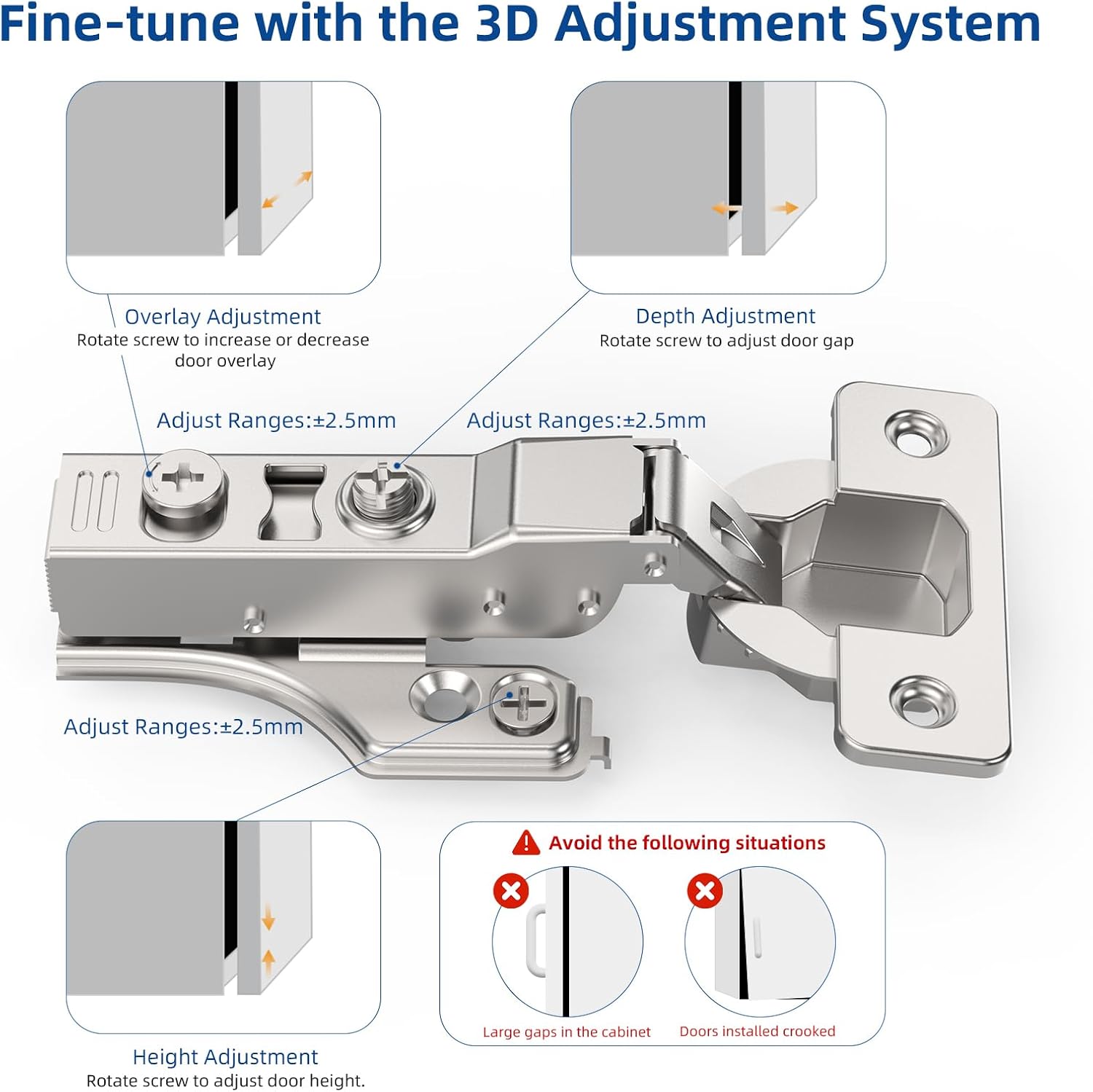 Chibery Soft Close Concealed Hinge for Face Frame & Frameless Door, 3D Adjustment, Clip-on Plate, Slow Self Closing Hidden Satin Nickel, 105° Stainless Steel Hinges - 1/4" & 3/8" Partial Overlay / 2 is backordered and will ship as soon as it is back in stock.