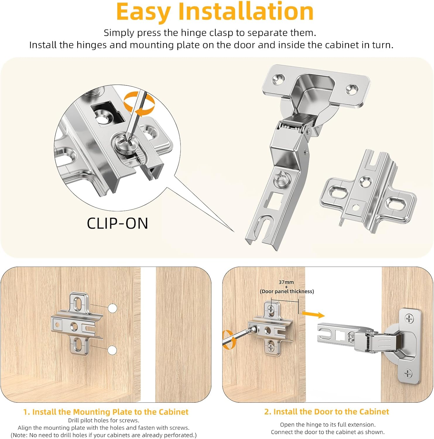 Chibery Nickel Plated Cabinet Hinges, Regular Standard Closing, Slide-on, Self-Closing, Frameless Concealed Euro 105 Degree Compact Hinges for Kitchen, Bathroom