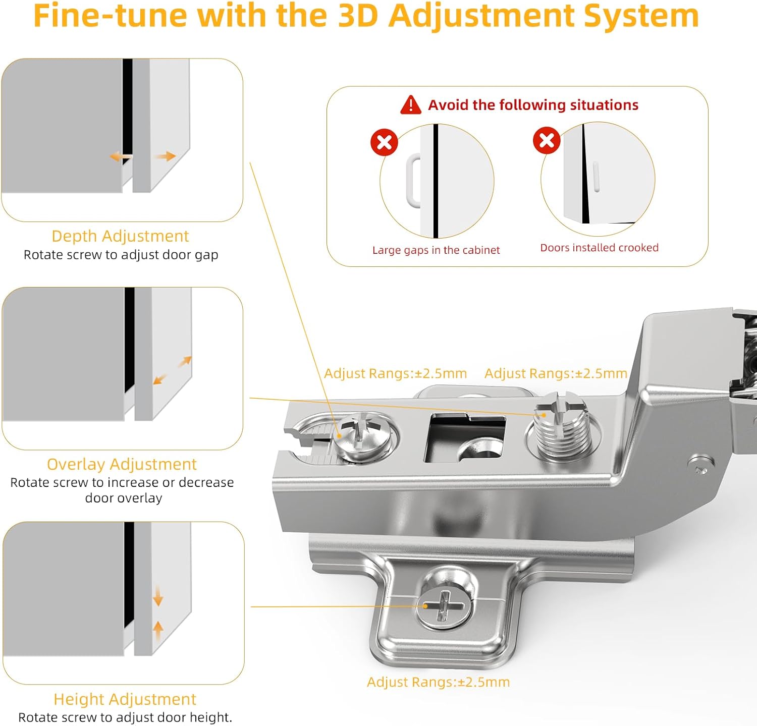 Chibery Nickel Plated Cabinet Hinges, Regular Standard Closing, Slide-on, Self-Closing, Frameless Concealed Euro 105 Degree Compact Hinges for Kitchen, Bathroom - Inset / 2 is backordered and will ship as soon as it is back in stock.