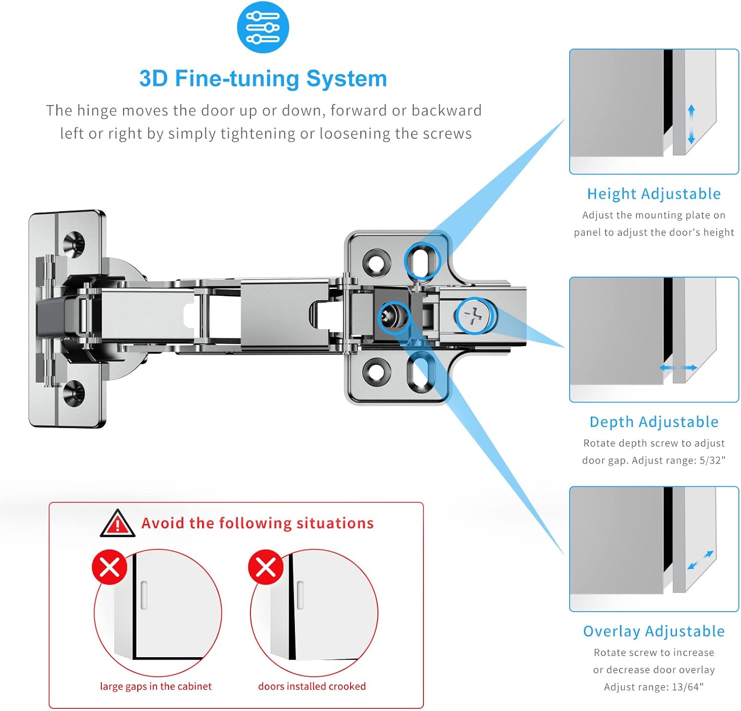• ✅Effortless Cabinet Upgrade: Easily enhance your corner kitchen cabinets with our 175° Concealed Hinge. Designed to fit most cabinet door styles, it features a 35mm cup diameter, 11.5mm cup depth, and 45mm screw hole distance for broad compatibility.